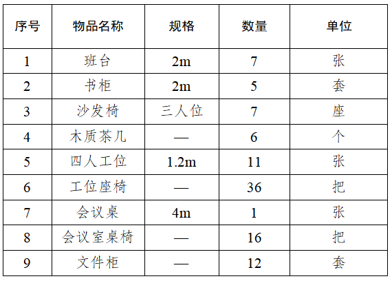 按配置清單采購辦公家具一批(詳見下表):