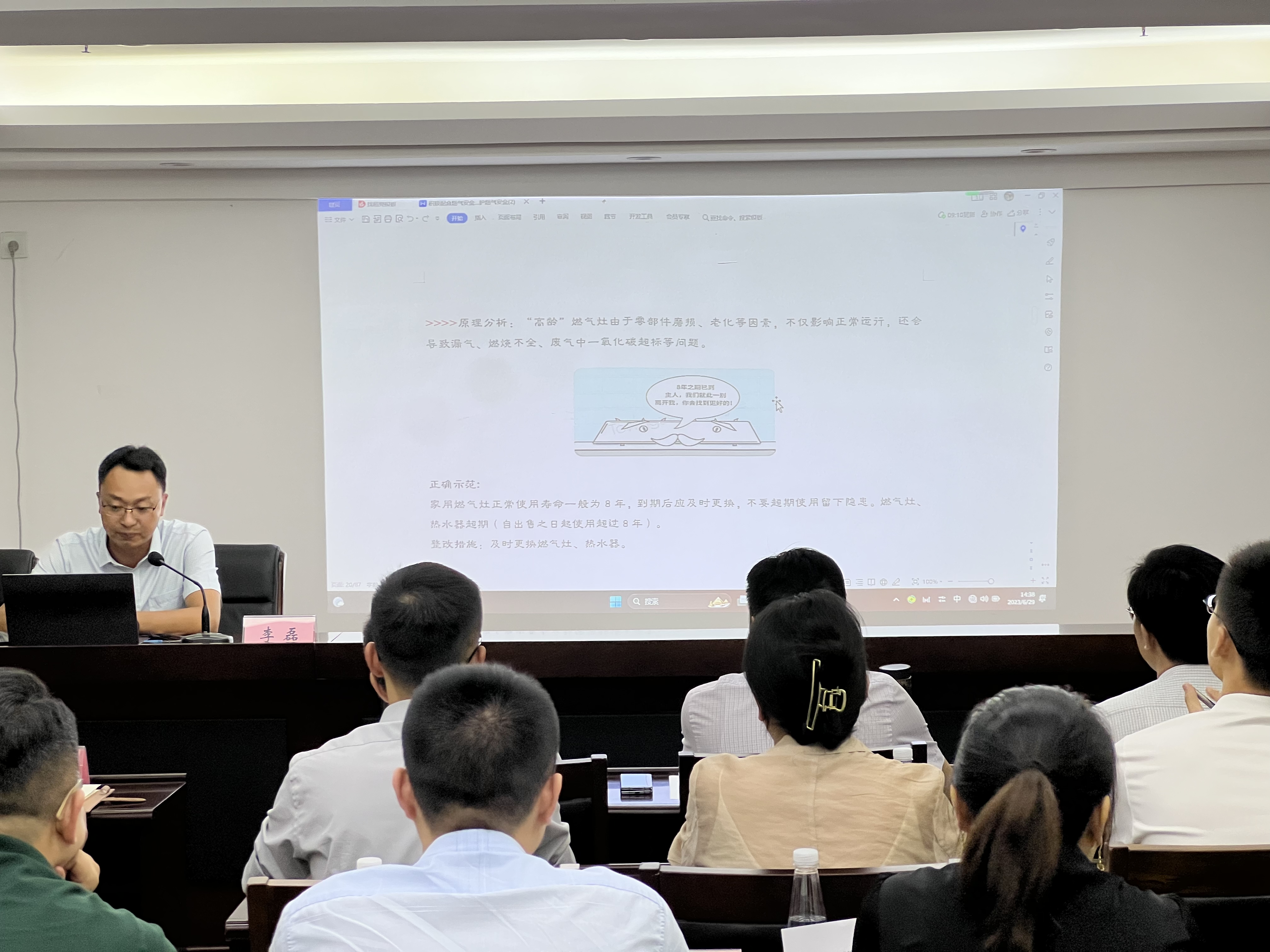 會上邀請市公用事業(yè)集團(tuán)技術(shù)信息中心負(fù)責(zé)人李磊講解培訓(xùn)燃?xì)馐褂冒踩R,并觀看了警示教育片《生命重于泰山》。
