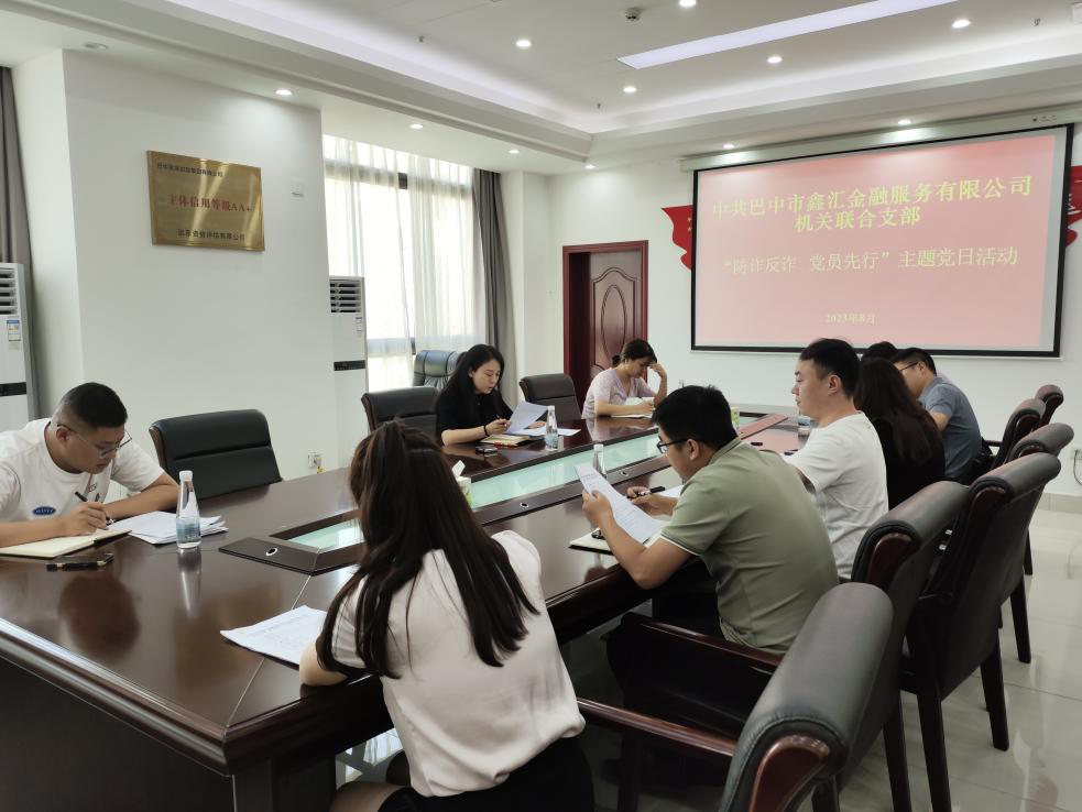 為進一步提高廣大黨員干部知詐、識詐、防詐、反詐意識,8月31日上午,中共巴中市鑫匯金融服務有限公司機關聯(lián)合支部開展“防詐反詐 黨員先行”主題黨日活動,機關聯(lián)合支部全體黨員、發(fā)展對象、入黨積極分子參加。