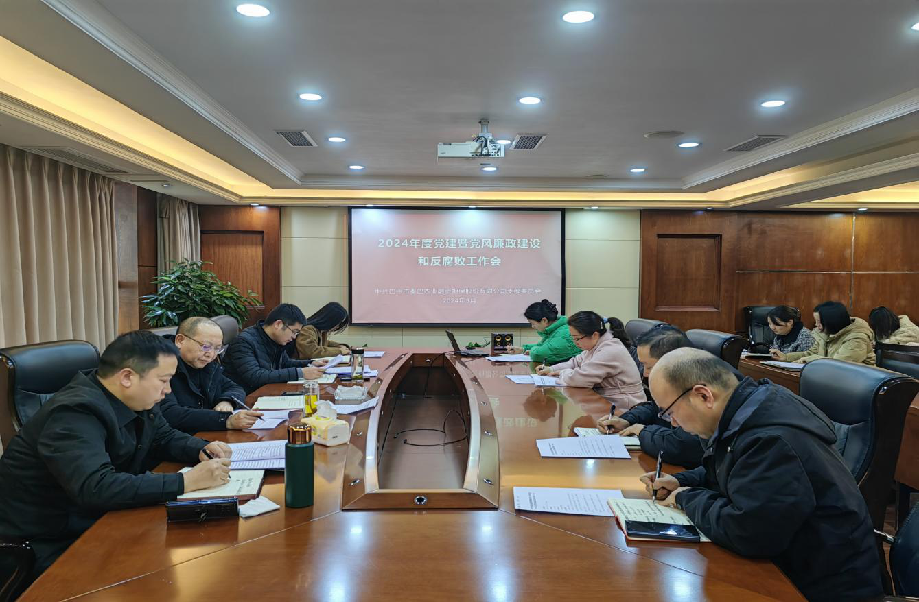 3月7日上午,巴中市秦巴農(nóng)業(yè)融資擔(dān)保股份有限公司召開2024年度黨建暨黨風(fēng)廉政建設(shè)和反腐敗工作會。會議以習(xí)近平新時代中國特色社會主義思想為指導(dǎo),深入學(xué)習(xí)貫徹黨的二十大精神和二十屆中央紀(jì)委三次全會精神,總結(jié)2023年度公司黨建、黨風(fēng)廉政建設(shè)和反腐敗工作,部署2024年度工作任務(wù)。